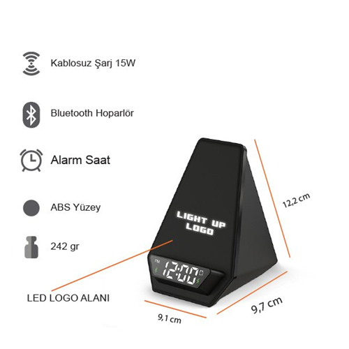 KABLOSUZ SARJ CİHAZI - HOPARLÖR W120 (AKILLI SAAT-ALARM-IŞIKLI LOGO)