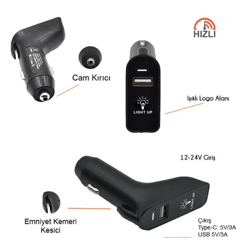 Işıklı Araç Şarj Cihazı CC50
