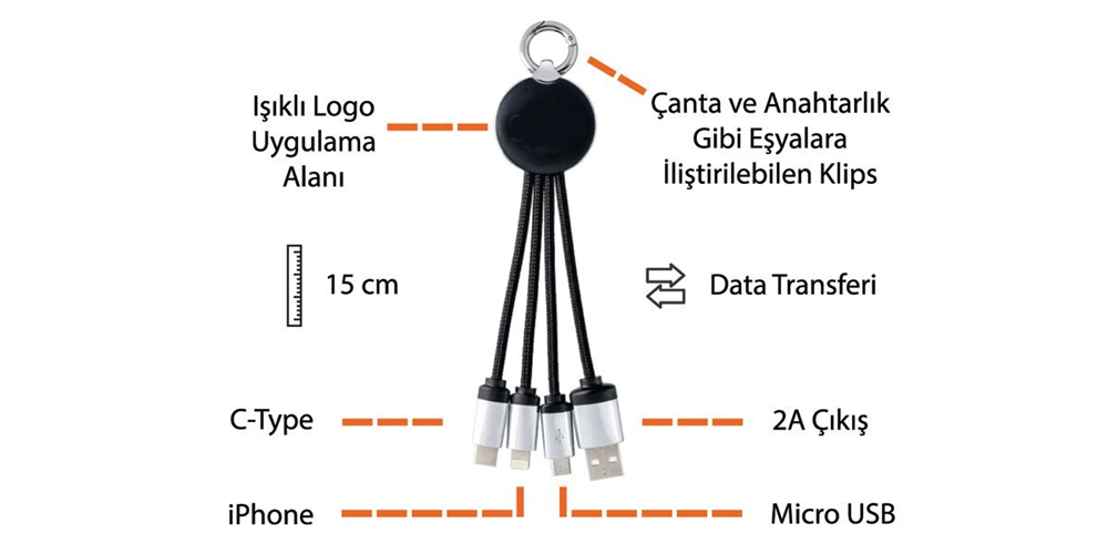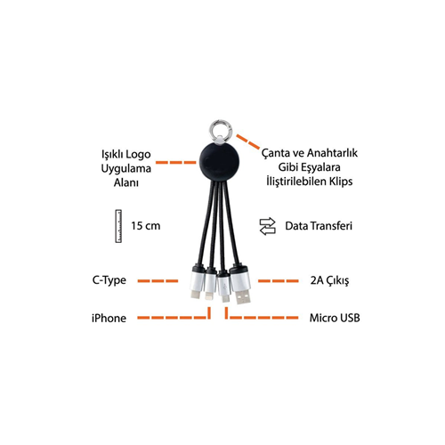 IŞIKLI KISA ŞARJ KABLOSU KL05 (YUVARLAK ÇANTALI)