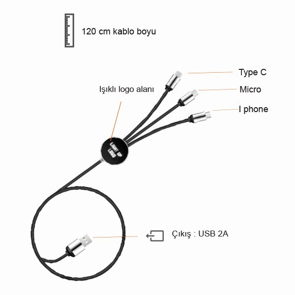 Işıklı Uzun Şarj Kablosu KL20 ( ÇANTALI)